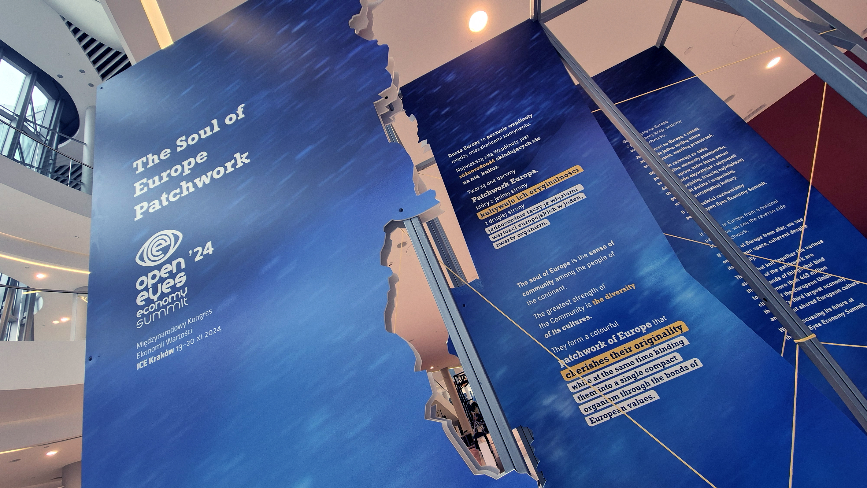 445 milionĂłw obywateli Unii Europejskiej, trzeciej gospodarki Ćwiata i wspaniaĆej europejskiej kultury. Autorzy: Monika Wanyura-Kurosad (koncepcja artystyczna), Mateusz ZmyĆlony (koncepcja gĆĂłwna), Natalia Grabowska (wspĂłĆpraca) oraz Kinga TaÄkiewicz (organizacja produkcji) PaweĆ Moczarski (produkcja). Open Eyes Economy Summit 2024 to kongres ekonomiczny poĆÄ