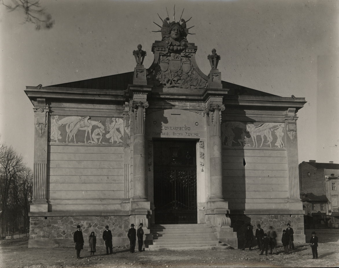 Kraków, plac Szczepański, gmach Towarzystwa Przyjaciół Sztuk Pięknych "Pałac Sztuki", fasada.