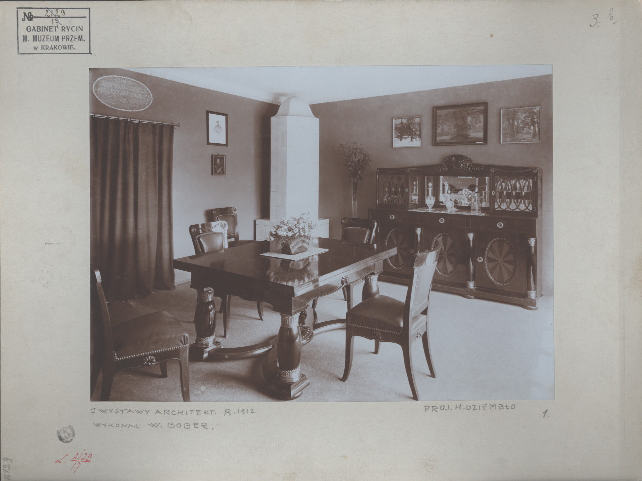 Wystawa architektury i wnętrz w otoczeniu ogrodowym, Kraków 1912, Henryk Uziembło (proj.), Wnętrze jadalni w dworku podmiejskim